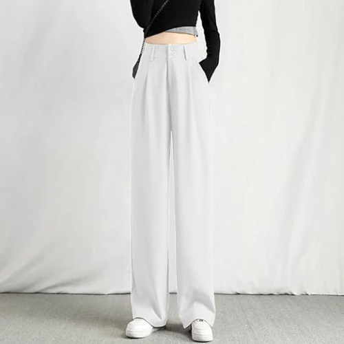 Polished and powerful, these wide-leg suit trousers combine structure with comfort. The elastic back waist ensures a perfect fit while maintaining an elegant, professional silhouette.