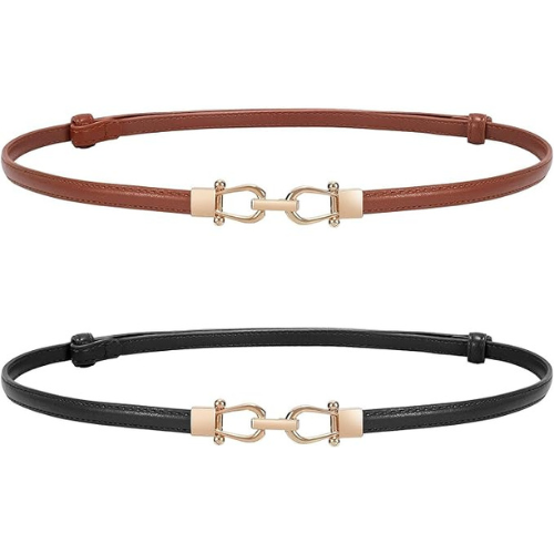 A subtle statement of sophistication. This adjustable leather belt with its polished gold buckle defines the waist and adds a refined touch to any outfit.